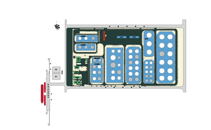 擁有各類儲(chǔ)罐24個(gè),總罐容7.96萬m3。其中立式儲(chǔ)罐22個(gè)(7.36萬m3),壓力球管2個(gè)(0.6萬m3)。